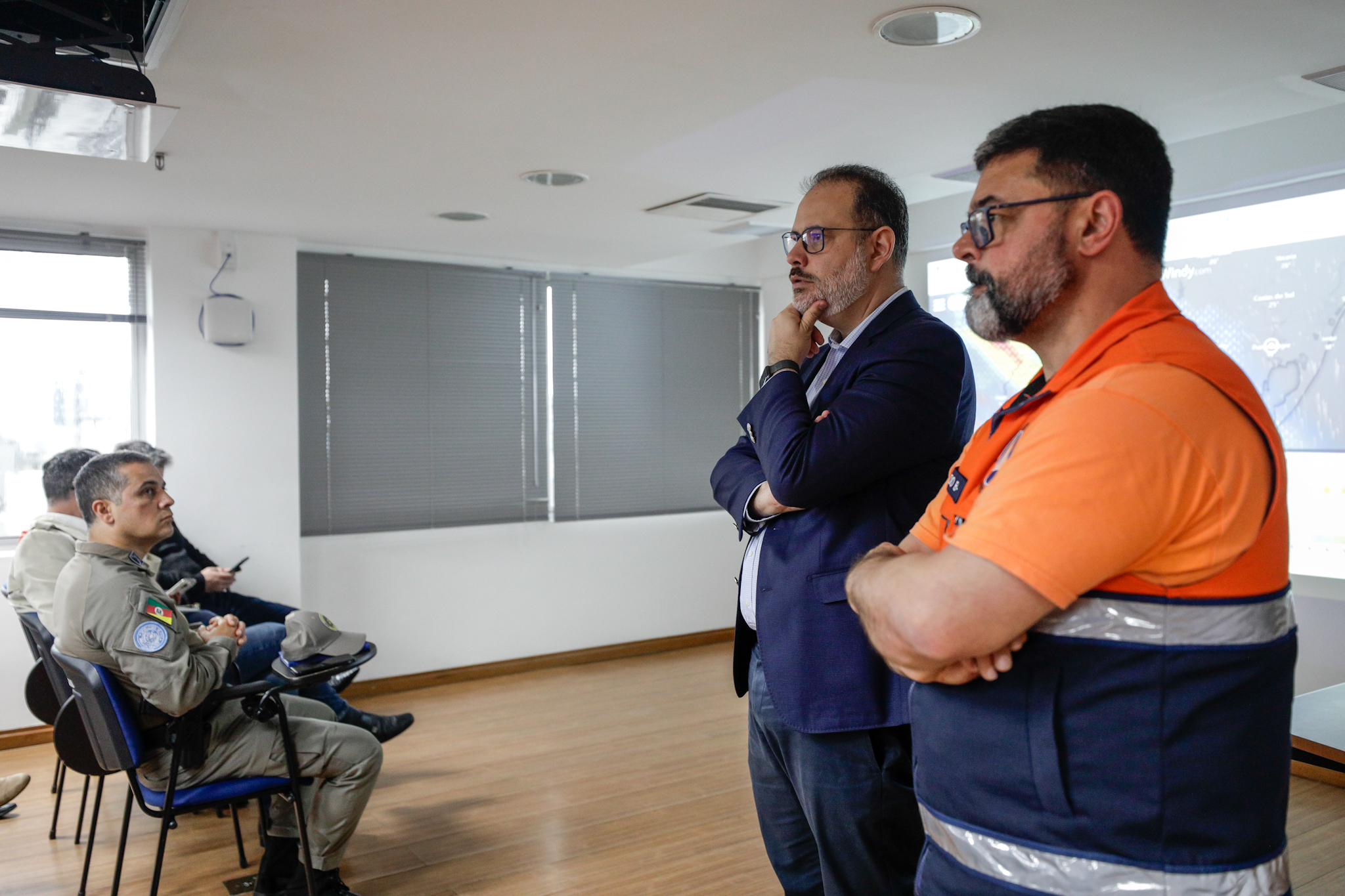 Representantes da Comissão Permanente de Atuação em Emergências (Copae) se reuniram, na manhã desta terça-feira, 12, no Centro Administrativo Municipal Guilherme Socias Villela (CAM), para alinhar ações preventivas devido à possibilidade de chuvas intensas em Porto Alegre nos próximos dias A reunião foi coordenada pelo vice-prefeito Ricardo Gomes e o coordenador da Defesa Civil Municipal, Evaldo Rodrigues.