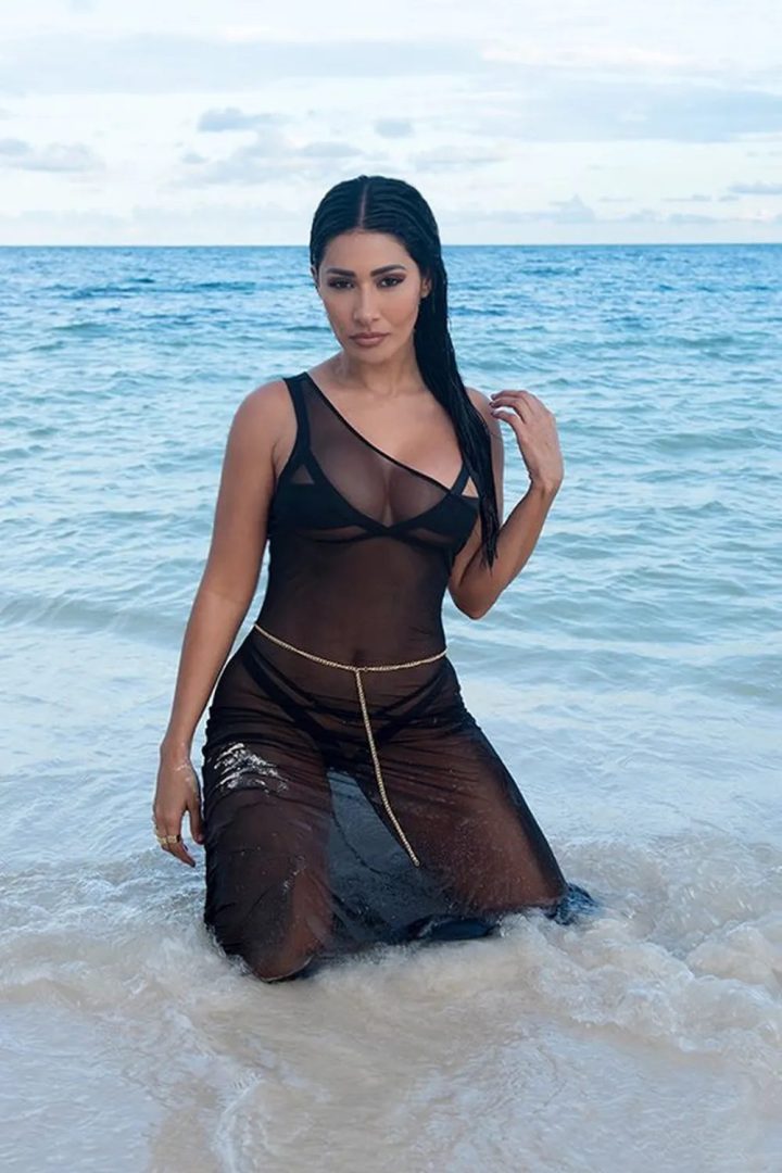 A cantora Simaria teve um momento de sereia nesta nesta quarta-feira (21). A artista de 41 anos surgiu lindíssima em uma praia, de biquíni preto com recortes e transparências, e uma saída de praia também transparente. Com os cabelos soltos e molhados, ela posou de joelhos na beira d’água.