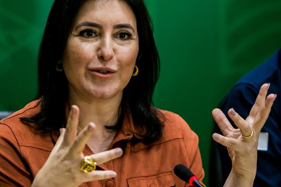 Em referência aos líderes nas pesquisas, Lula e Bolsonaro, o jingle de Simone Tebet cita ainda que o “Passado não enche a barriga” e que “Para o Brasil sorrir de novo, ela sim”.
