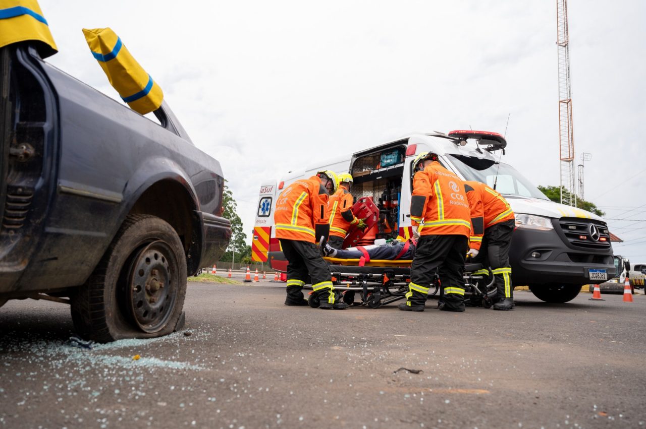 Com o choque, houve vazamento do produto perigoso e as equipes terão que atuar nesta condição. Cerca de 10 vítimas serão identificadas. Ao ser acionado, o Centro de Controle Operacional da ViaSul mobilizará as equipes de socorro, inspeção, Corpo de Bombeiros e demais órgãos, que realizarão o resgate das vítimas, além de atuar no vazamento de produto altamente inflamável.
