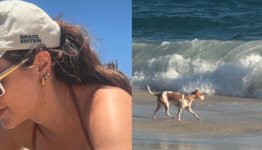 Paolla Oliveira aproveitou o forte calor que fez no Rio nesse domingo (11) para ir à praia com um de seus bichinhos de estimação. A atriz postou alguns cliques do programa praiano no seu perfil no Instagram, onde mostrou o pet, perto do mar, e apareceu relaxando, se bronzeando, tomando água de coco e exibindo seus pés em um chinelo com as cores do Brasil.