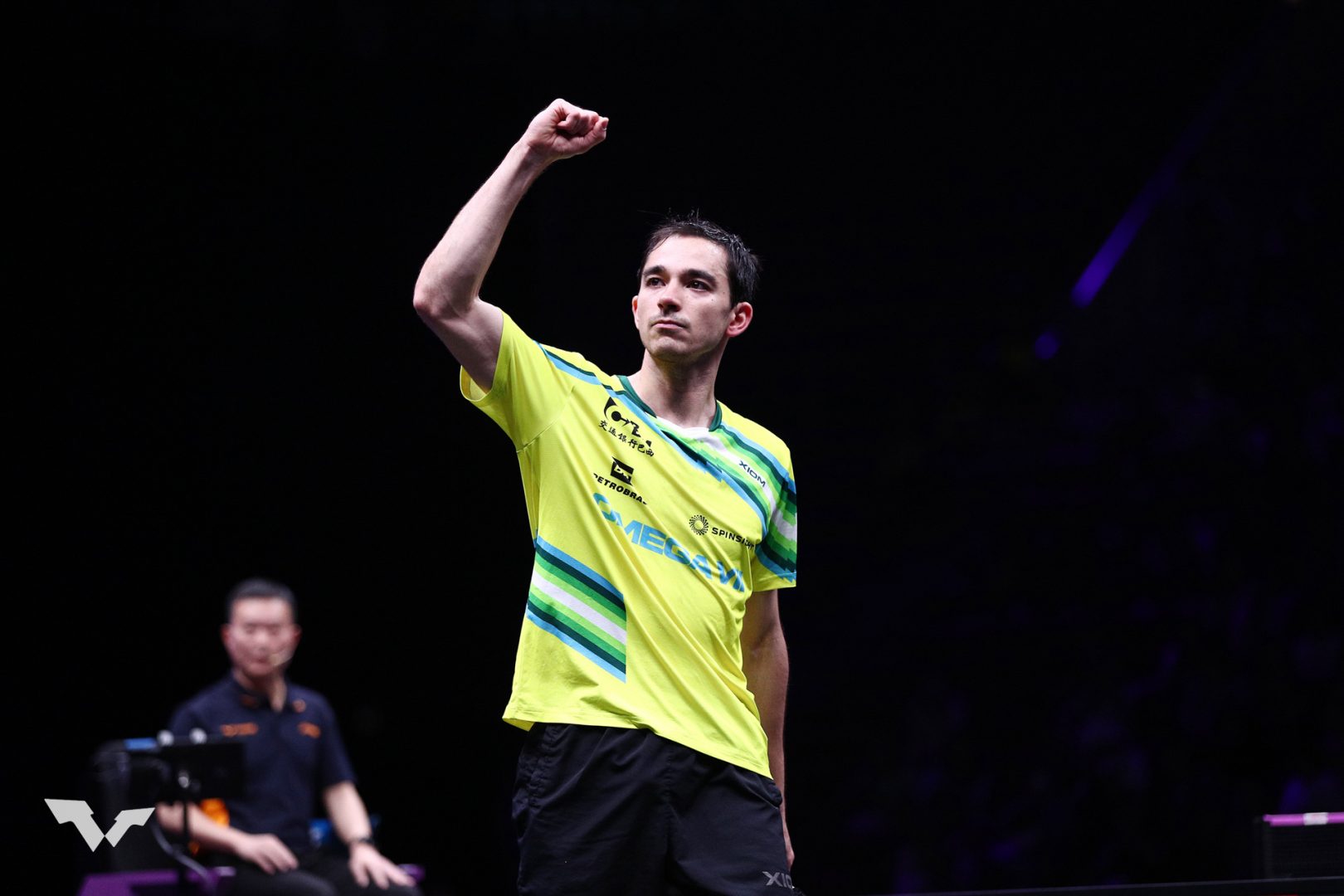 O número um do mundo, que acabou vencendo o torneio, derrotou o brasileiro, terceiro do ranking, por 4 sets a 1 (11/7, 11/3, 11/7, 6/11 e 12/10). Mais disputada, a outra semifinal teve vitória do japonês Sora Matsushima (número 8 do ranking) sobre o taiwanês Lin Yun-Ju (número 7) por 4 a 3 (7/11, 11/6, 12/10, 9/11, 5/11, 11/2 e 6/11). Sem disputa por terceiro lugar, Calderano e Lin Yun-Ju ficaram com o bronze, com o Brasil subindo ao pódio pelo segundo ano consecutivo no campeonato.