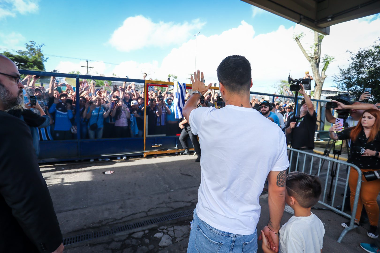 Acompanhado por sua esposa Sofi e dos filhos Lautaro, Benjamin e Delfina, Luisito dirigiu-se aos fãs gremistas para a emocionante despedida. O jogador uruguaio acenou para a torcida e até recebeu uma bandeira do seu país, mas optou por devolvê-la aos torcedores. Suárez planeja passar as férias no Uruguai ao lado da família.