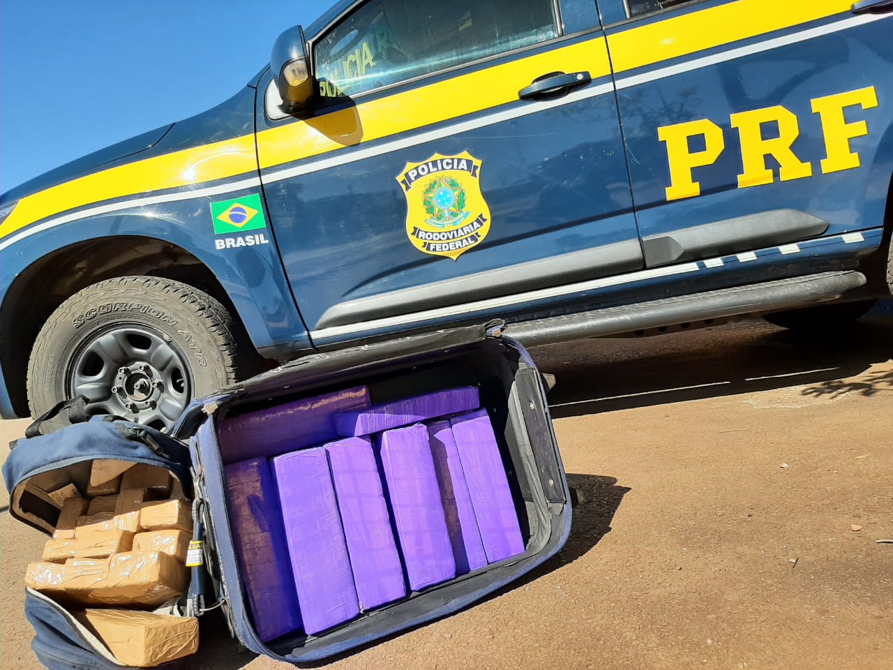 O veículo, que havia partido do Pará, foi abordado durante fiscalização na rodovia. Ao revistarem o bagageiro, os policiais encontraram vários tabletes de maconha em duas malas.