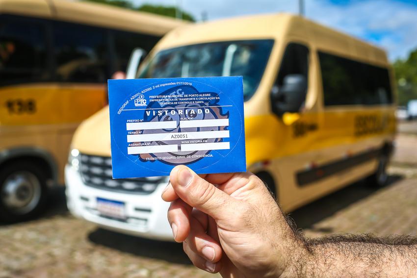 Quem for autorizado tem um selo de vistoria afixado junto ao para-brisa, que indica a situação do veículo: vermelho significa reprovação (veículo não pode operar); amarelo significa aprovação provisória (pode operar até a data informada no selo) e azul significa aprovação (veículo apto a operar até a próxima vistoria), ou seja, está em condições de transportar os alunos.