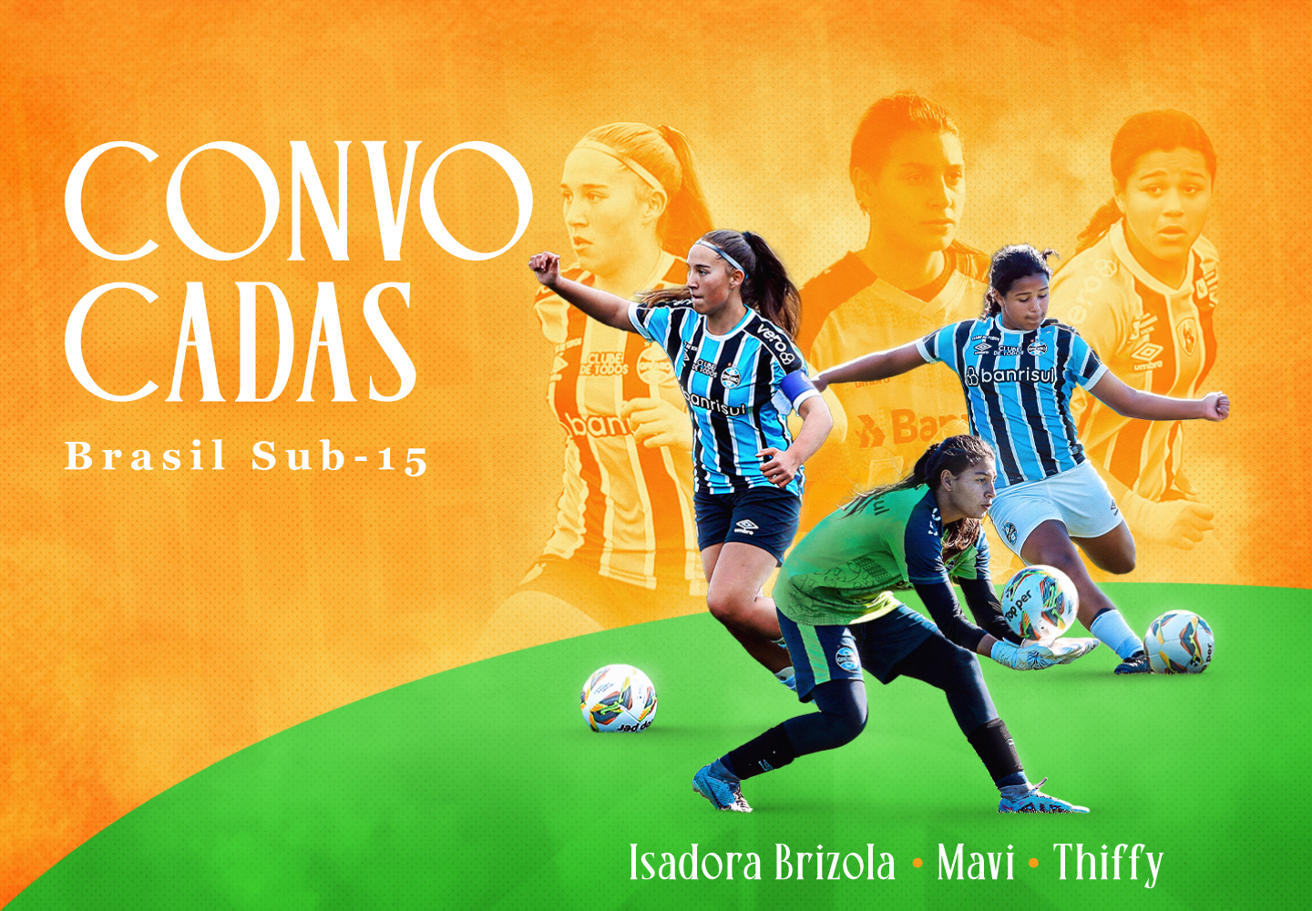 As três jogadoras somam sua primeira convocação. A goleira Mavi, de 14 anos, iniciou sua trajetória na Escola do Grêmio, em 2023, assim como a atacante Thiffy, de também 14 anos. Já a zagueira Isadora Brizola, de 13 anos, começou na Escola do Grêmio em 2024.