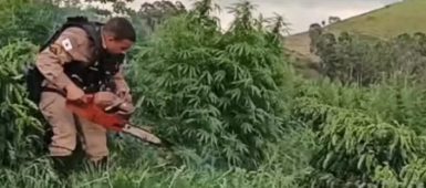 Polícia corta e queima cerca de 500 pés de maconha em plantação mantida por família em Minas Gerais