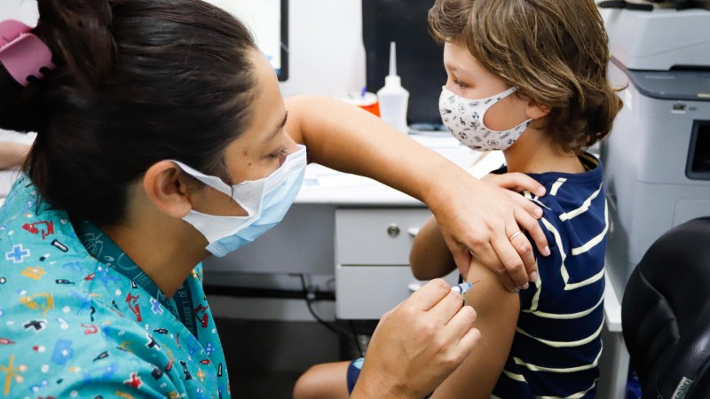 Crianças de 5 a 11 anos recebem uma dose da vacina da Pfizer que é de 10 microgramas, um terço da dose administrada a crianças e jovens de 12 a 17 anos.