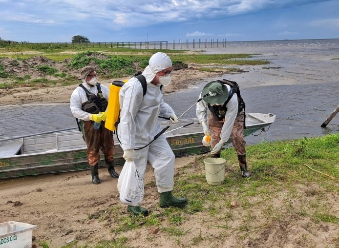 Dentre as ações realizadas, estão vistorias em campo para monitoramento de aves. São utilizados barcos e drones para supervisionar a lagoa e a área do foco. As amostras coletadas são encaminhadas ao Laboratório Federal de Defesa Agropecuária de Campinas (LFDA-SP), unidade de referência da Organização Mundial de Saúde Animal (OMSA), que confirma ou não presença do vírus.